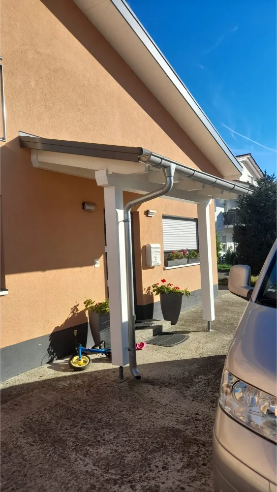 Schutz vor Regen, Sonne und Wind – direkt am Hauseingang. Wir montieren Vordächer sauber, passgenau und dauerhaft befestigt.